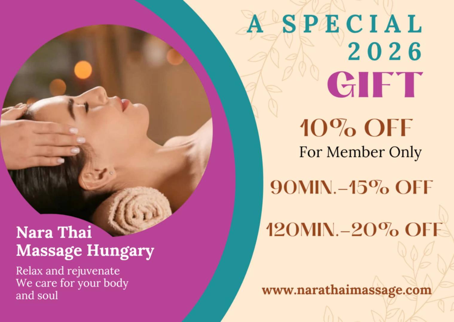 - 120-minute massage: 20% off